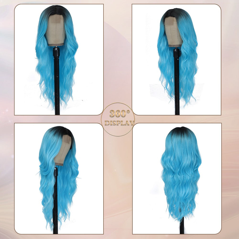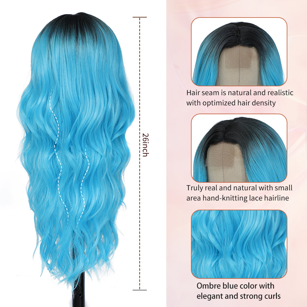 - 【WHAT YOU GET】1 x 24inch Long Blue Wavy Middle Part Wig with Hand-knitting small lace part, 2 x Wig Cap and friendly customer service.