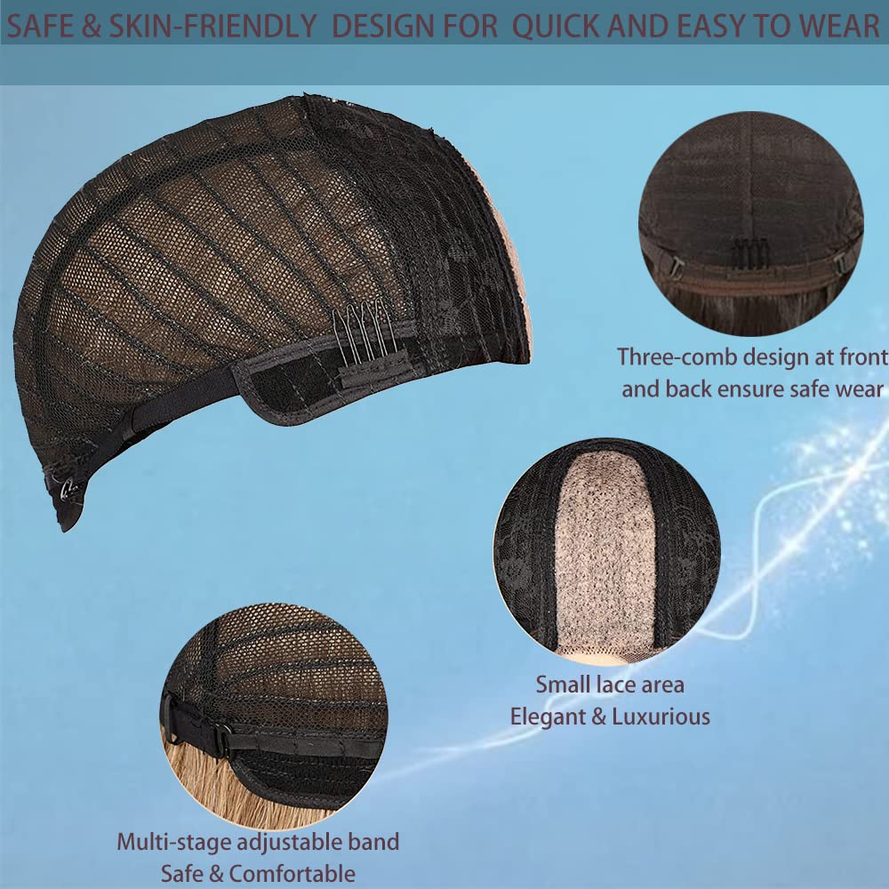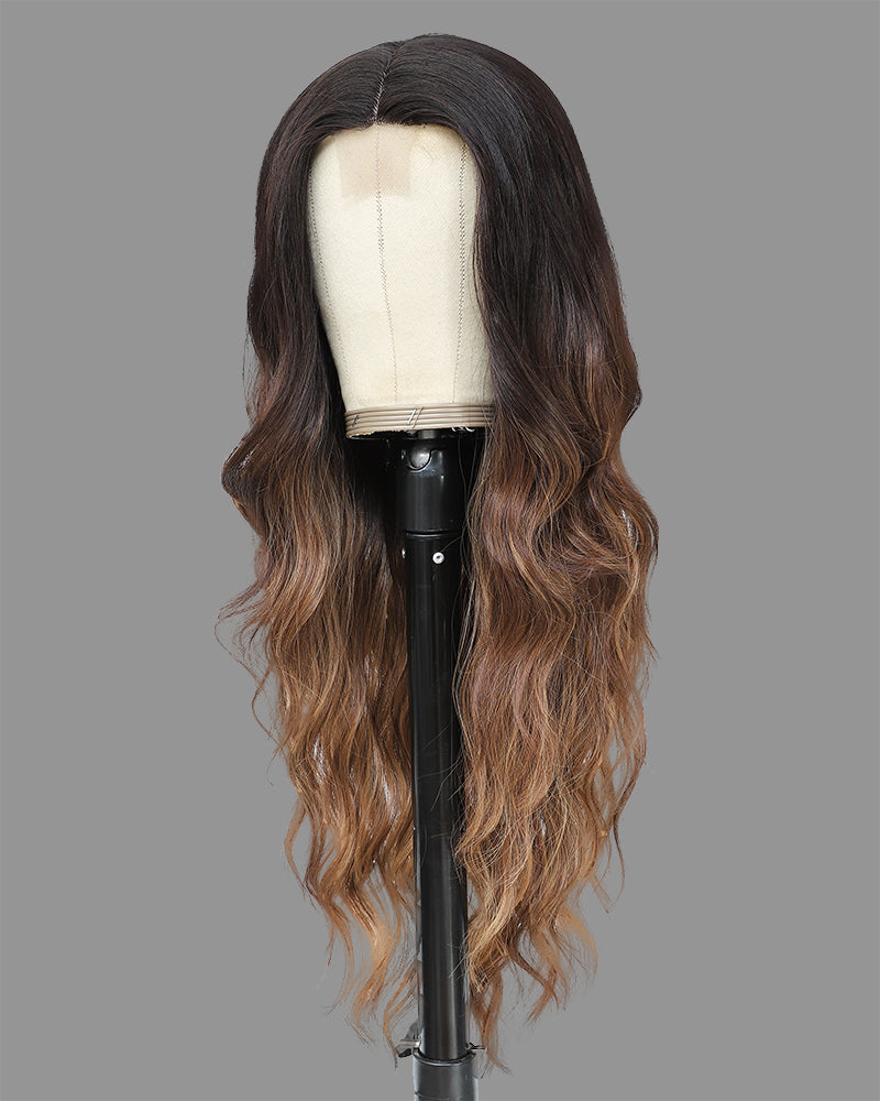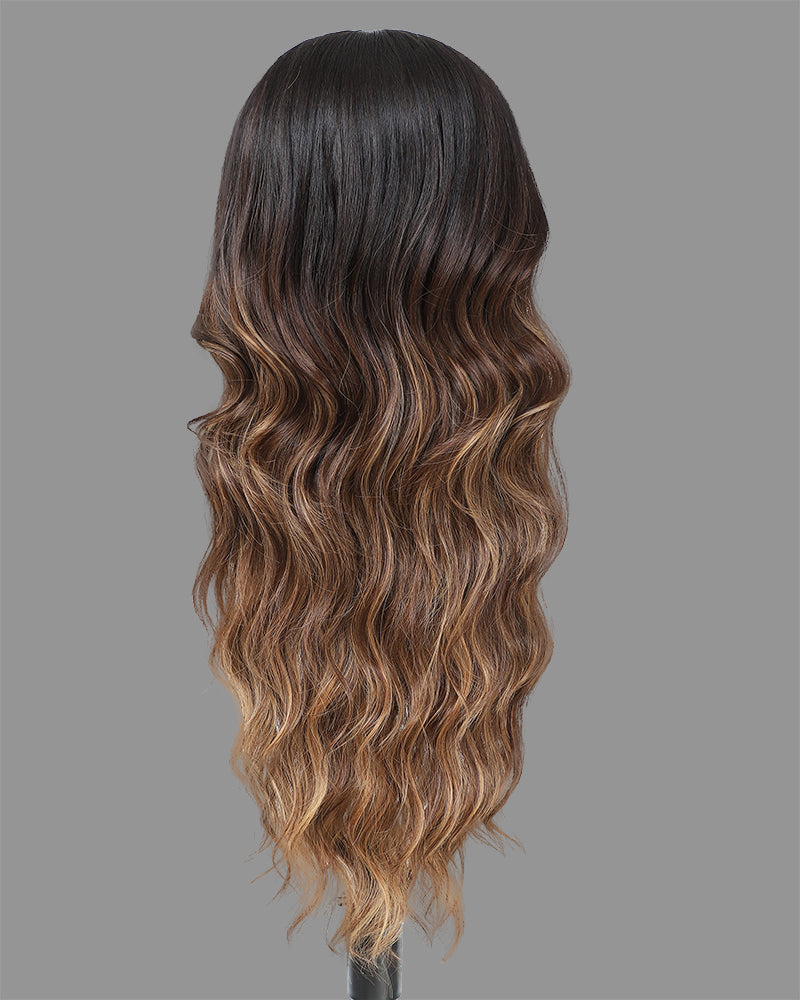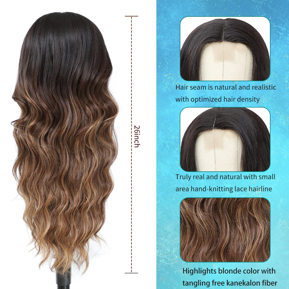 - 【WHAT YOU GET】1 x 24inch Long Ombre Brown Mixed Blonde Wavy Middle Part Wig with Hand-knitting small lace part, 2 x Wig Cap and friendly customer service.